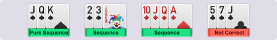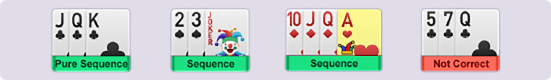 The objective of the game is to arrange all 13 cards in sequences and/or sets.