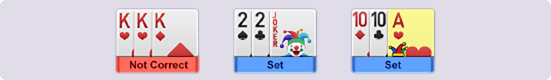 Sets are a group of 3 or 4 cards with the same rank but different suits.