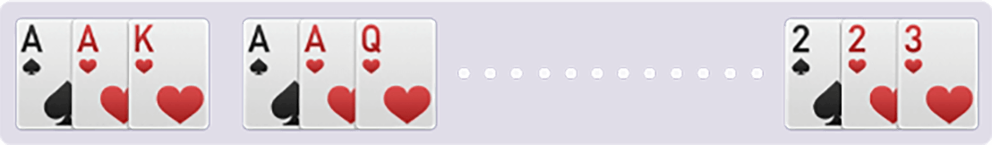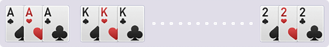 Two standard decks of 52 cards is used consisting of Ace, 2,3,4,5,6,7,8,9,10, Jack, Queen and King.