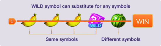 On the winning line, the same symbol in the first reel from left to tight can bewon